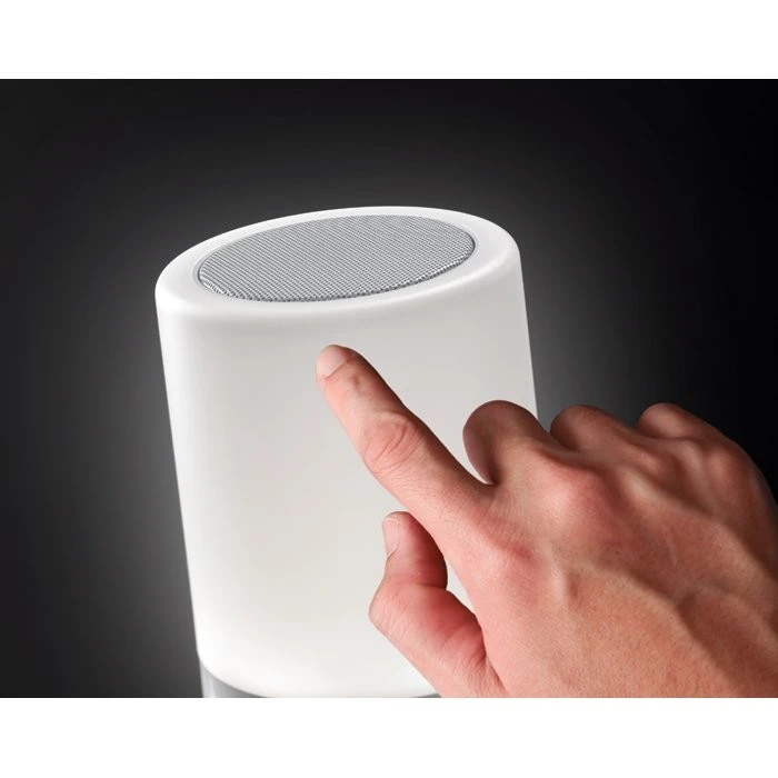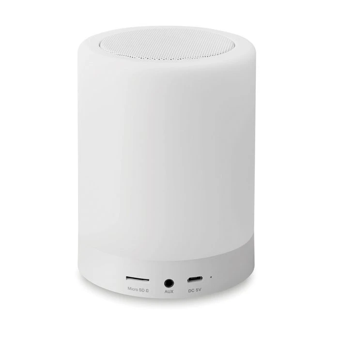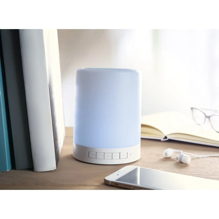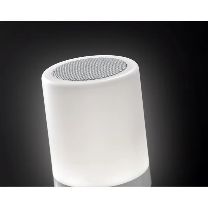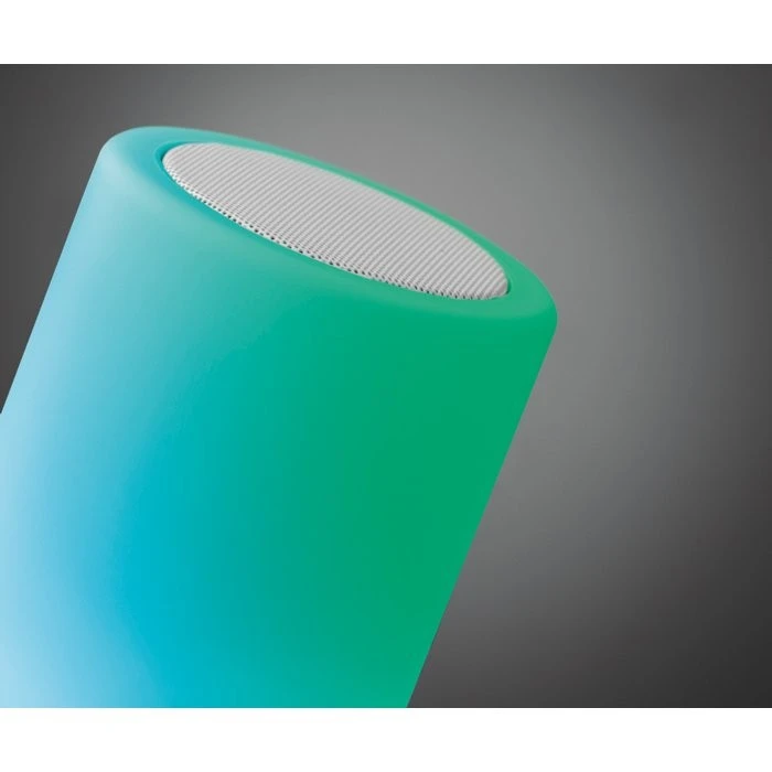 Bluetooth Lautsprecher mit wechselndem, farbigem Licht 1,6W. Farbe und Helligkeit auch per Touchfunktion einstellbar. Micro-SD-Karten Slot. Rufannahme-Funktion. Mit Fernbedienung. Wieder aufladbare Li-Ion 1200 mAh. Ausgangsstrom: 4W.