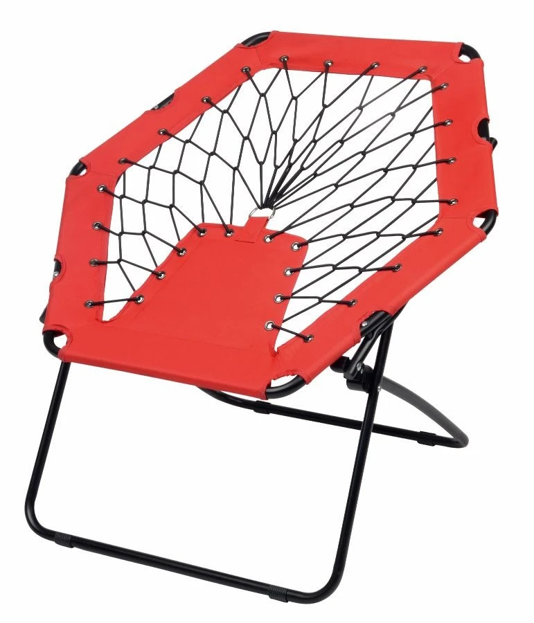 Bungee Stuhl CHILL OUT: Bequeme Sitzfläche aus elastischen Seilen, stabiles Gestell aus Stahl, mit ausklappbaren Standfüßen