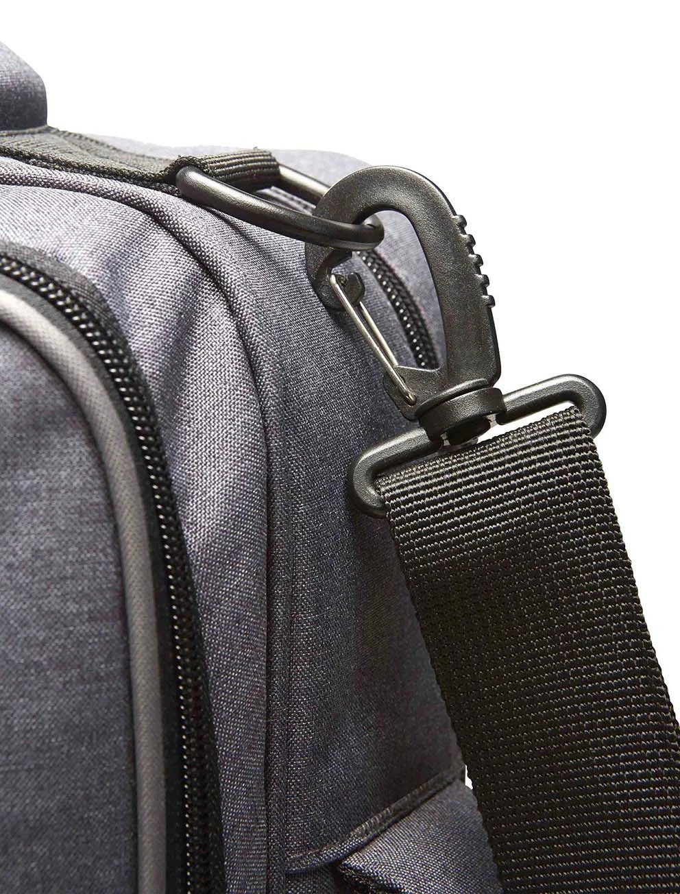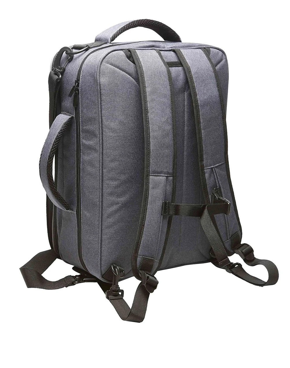 Komfortable Businesstasche/Rucksack mit raffinierten Details; großes, gepolstertes Hauptfach mit Notebookhalterung; Bodenfüße; Reißverschlussvortasche mit Organizerelementen; flache Reißverschluss-Vortasche; 2 gepolsterte Handgriffe; abnehmbarer und längenverstellbarer Schultergurt; gepolsterte und versenkbare Rucksackträger; höhenverstellbarer Brustgurt