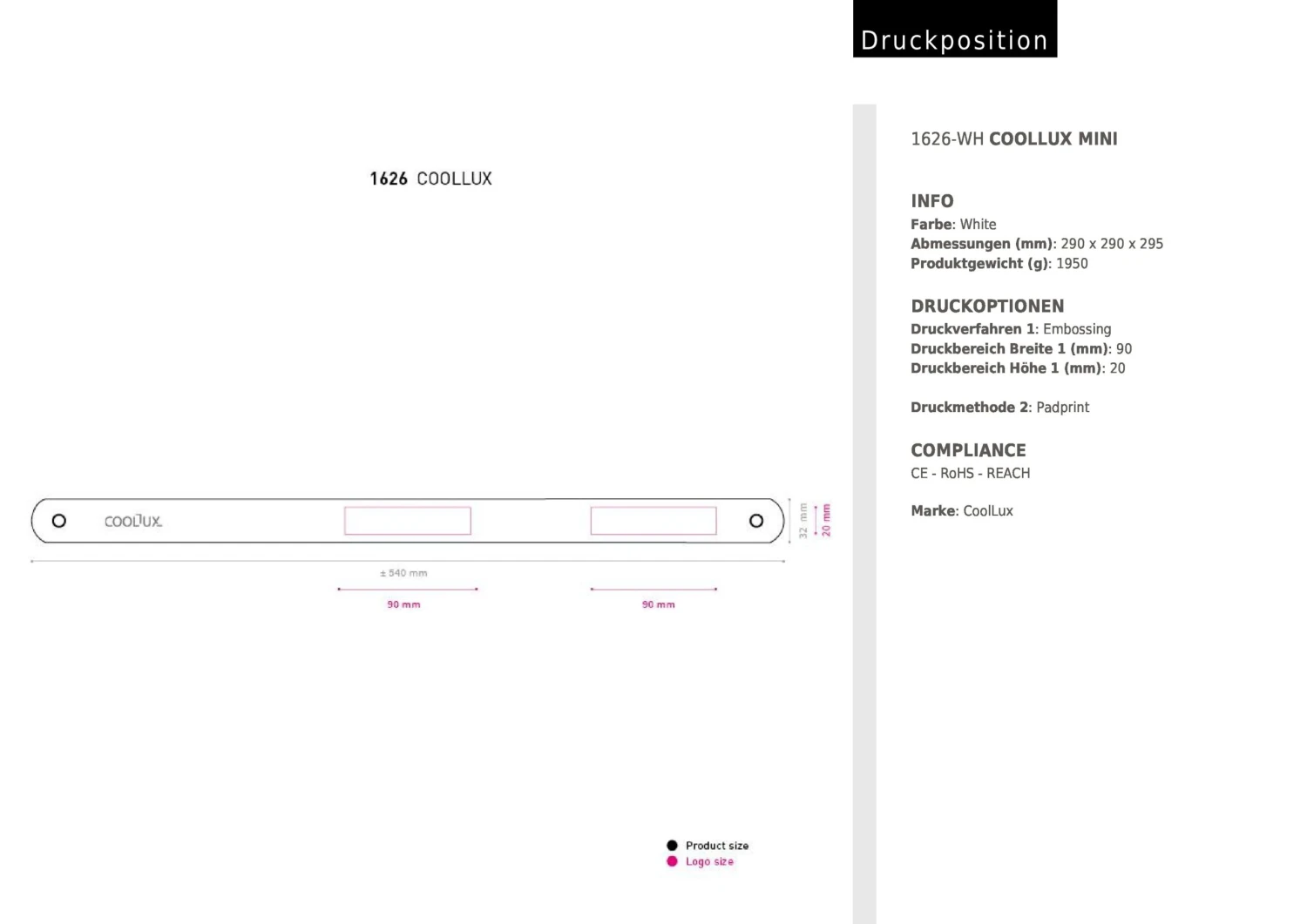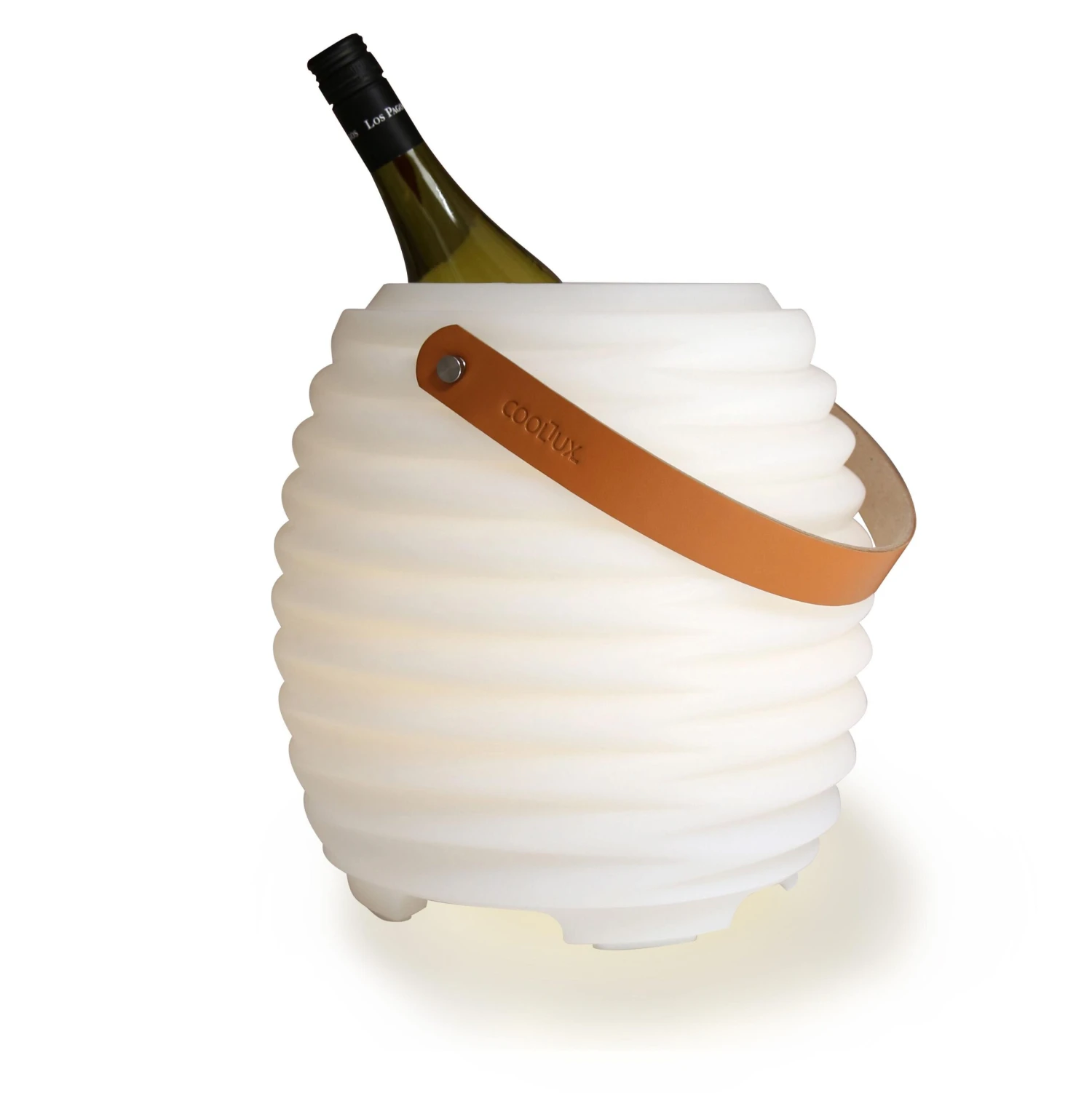 Ein Lautsprecher, Stimmungslicht und Kühler in einem … Der CoolLux Mini ist der ultimative Stimmungsmacher für jede Jahreszeit. Genießen Sie einen Drink, die Musik und einander an einem schönen Sommerabend oder schön warm drinnen, wenn es etwas kühler ist. Eine Flasche Wein oder 4 Dosen passt schön drin und mit einigen Eiswürfeln bekommt man die richtigen Temperatur. Der CoolLux kann auf das Band gedruckt werden, sodass Sie bei jedem atmosphärischen Anlass ein Logo leuchten lassen können. Garantierter Erfolg!