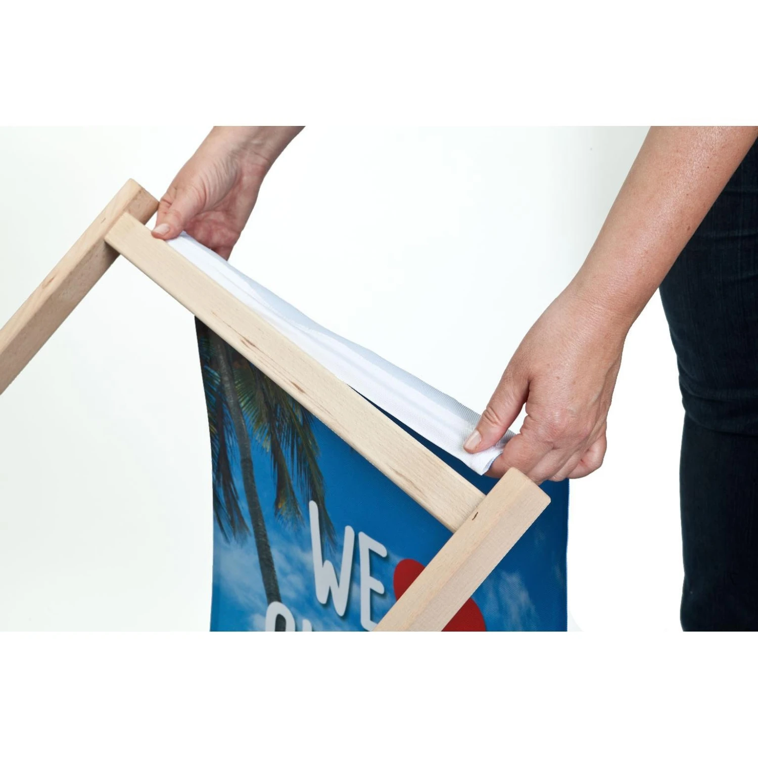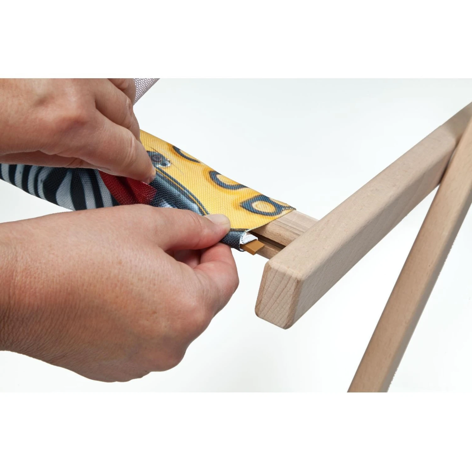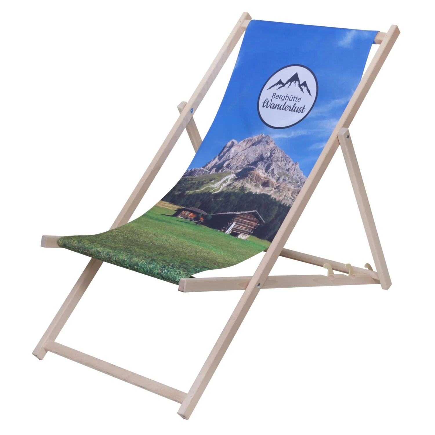 Egal ob Strand, Balkon oder Garten … Hauptsache chillen. VerstellbarerLiegestuhl aus Buchenholz mit Polyester-Bezug, der individuell bedrucktwerden kann. Der Bezug ist abnehm- und waschbar. Tragfähigkeit: 95 kg