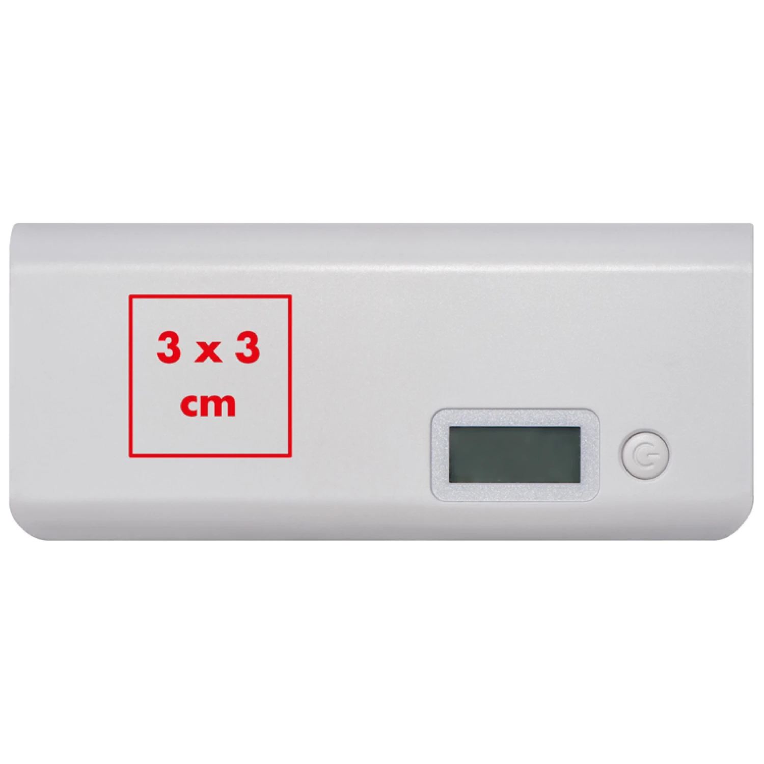 Powerbank aus Kunststoff mit 10.000 mAH Leistung, digitaler Ladeanzeige und Aufladekabel. Mit dieser Powerbank haben Sie immer genug Enerigie um Ihr Smartphone/Tablet mehrfach wieder aufzuladen, auch wenn Sie länger unterwegs sind. Besonders praktisch: Mit den beiden USB-Anschlüssen lassen sich auch zwei Smartphones gleichzeitig aufladen. Ihre Werbung drucken wir auf die Oberseite.