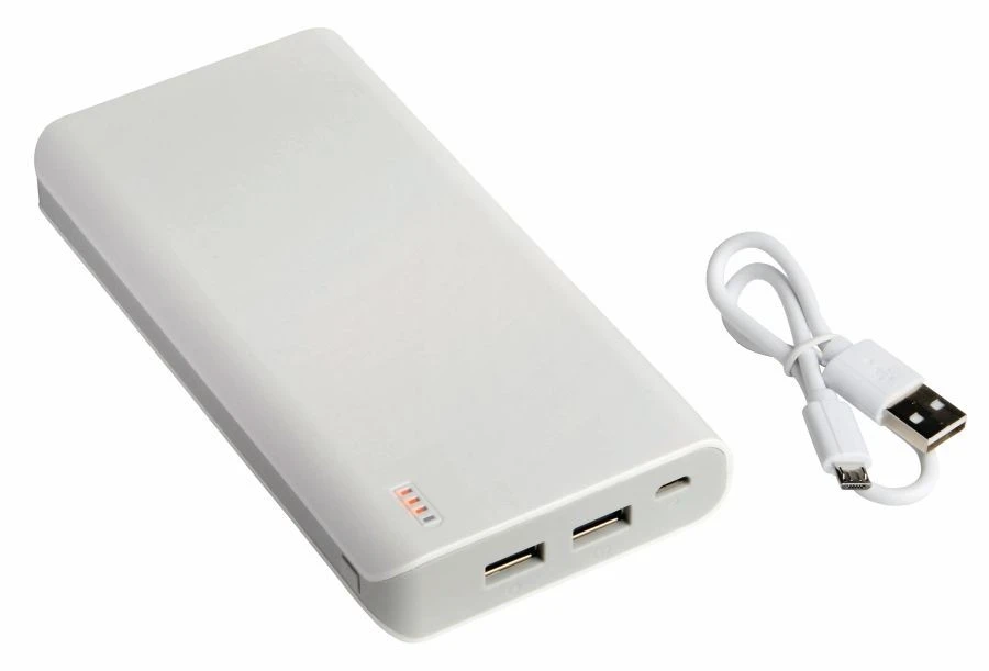 Powerbank STORAGE die perfekte Energiereserve für unterwegs: geeignet für die gängigsten Smartphones und USB-Geräte, mit Ladestandanzeige auf Knopfdruck, USB-Ladekabel mit Micro-USB-Stecker (Länge: ca. 30 cm), zwei USB-Anschlüsse: Eingangsleistung: 5V/2,1A, Ausgangsleistung: 5V/2,1A und 5V/1A, Kapazität: 20.000 mAh, leistungsstarker Akku