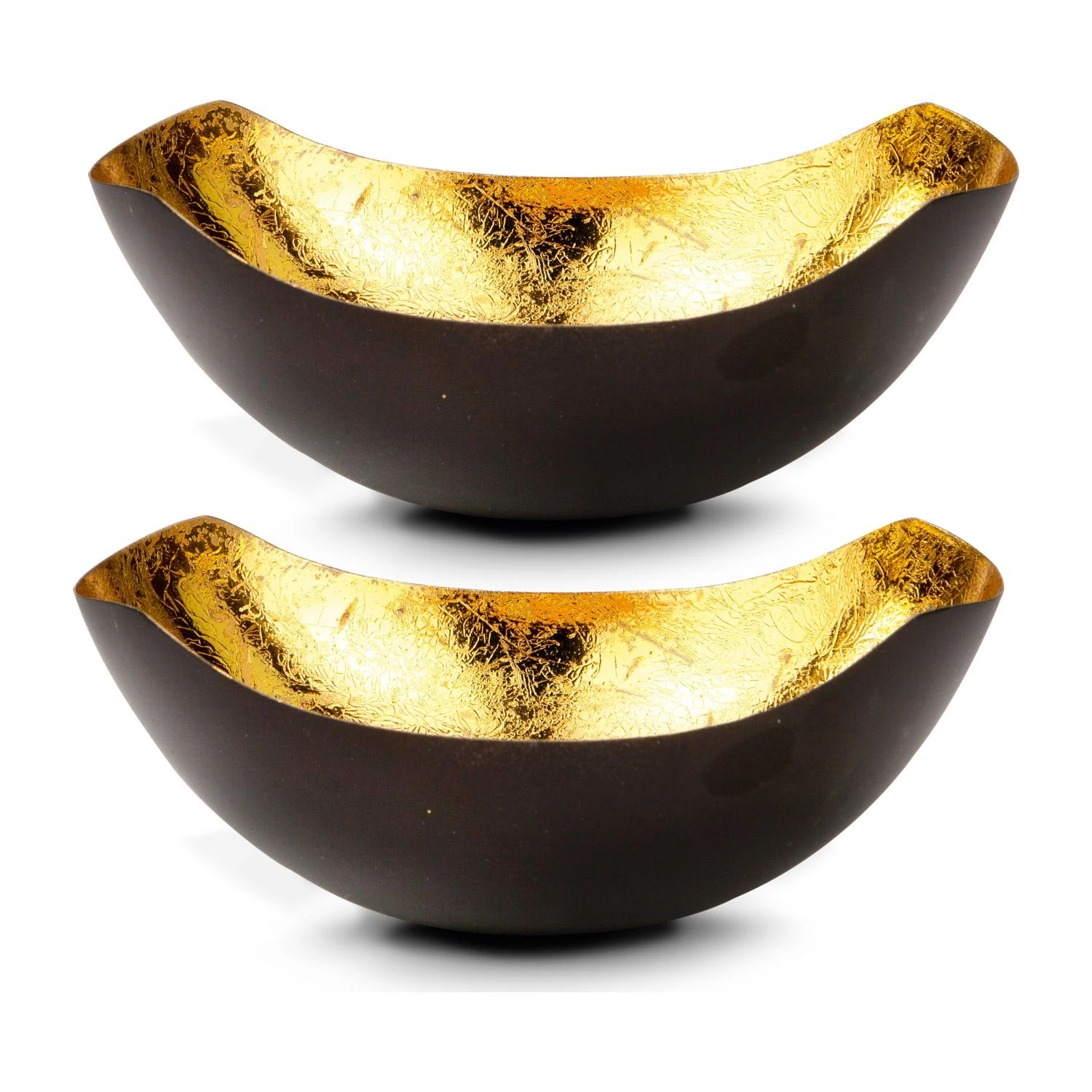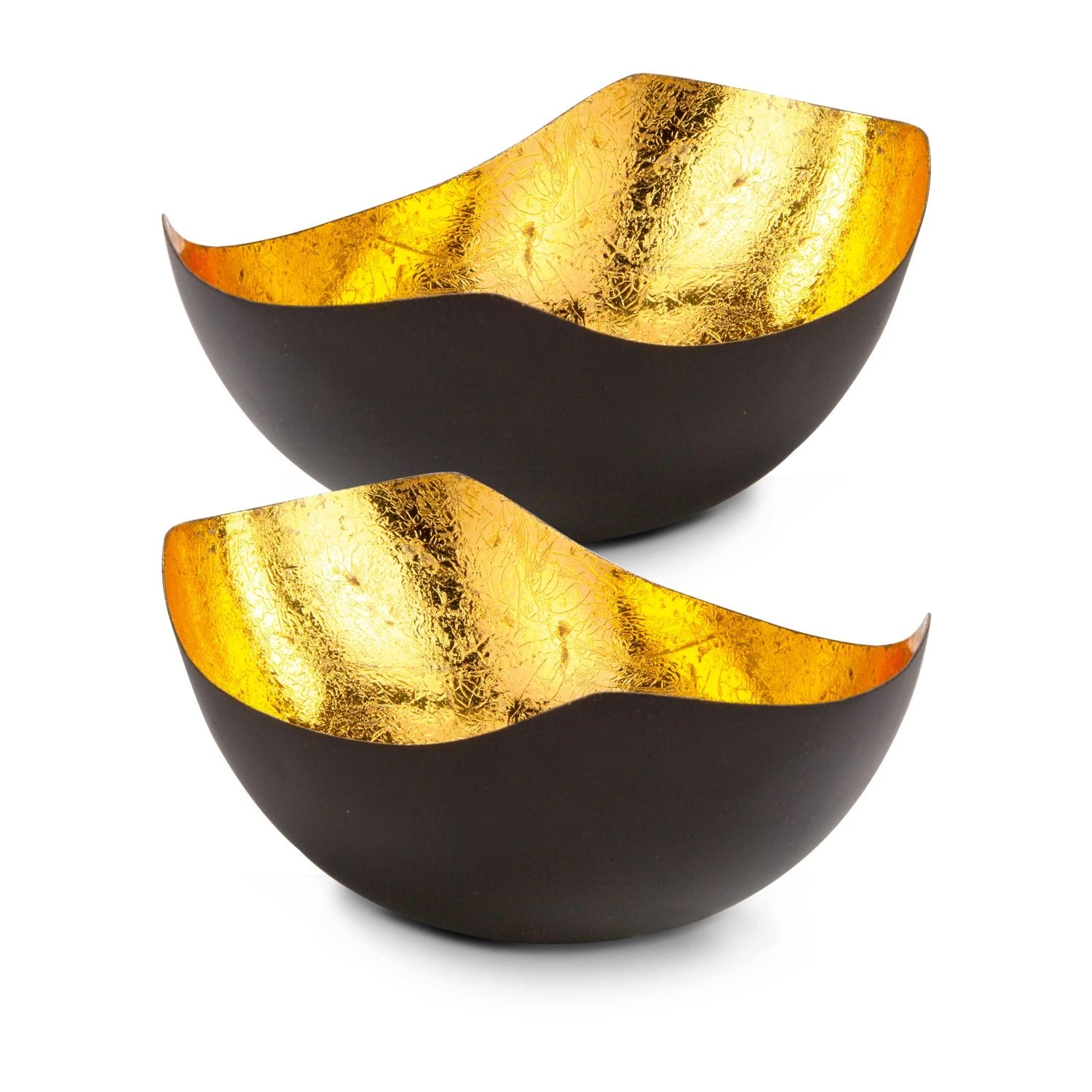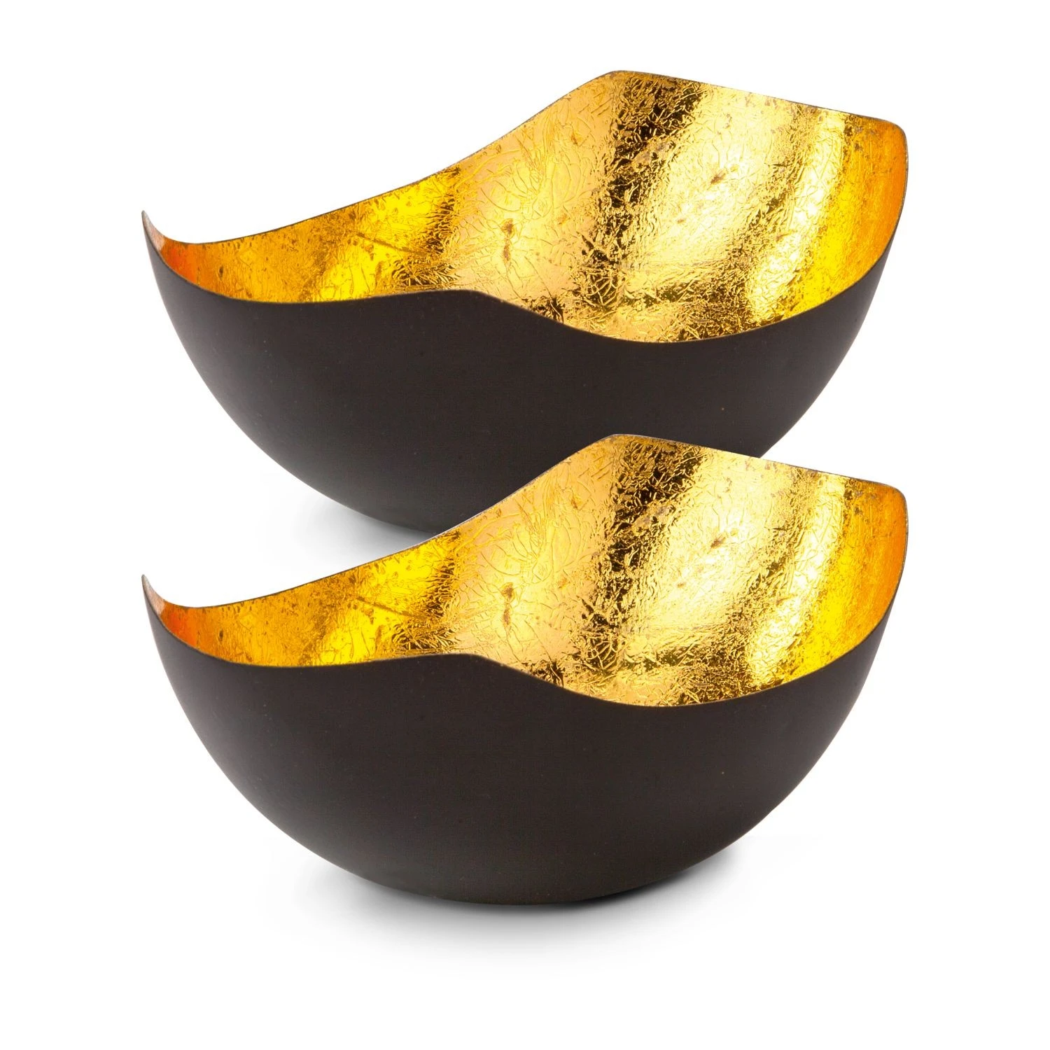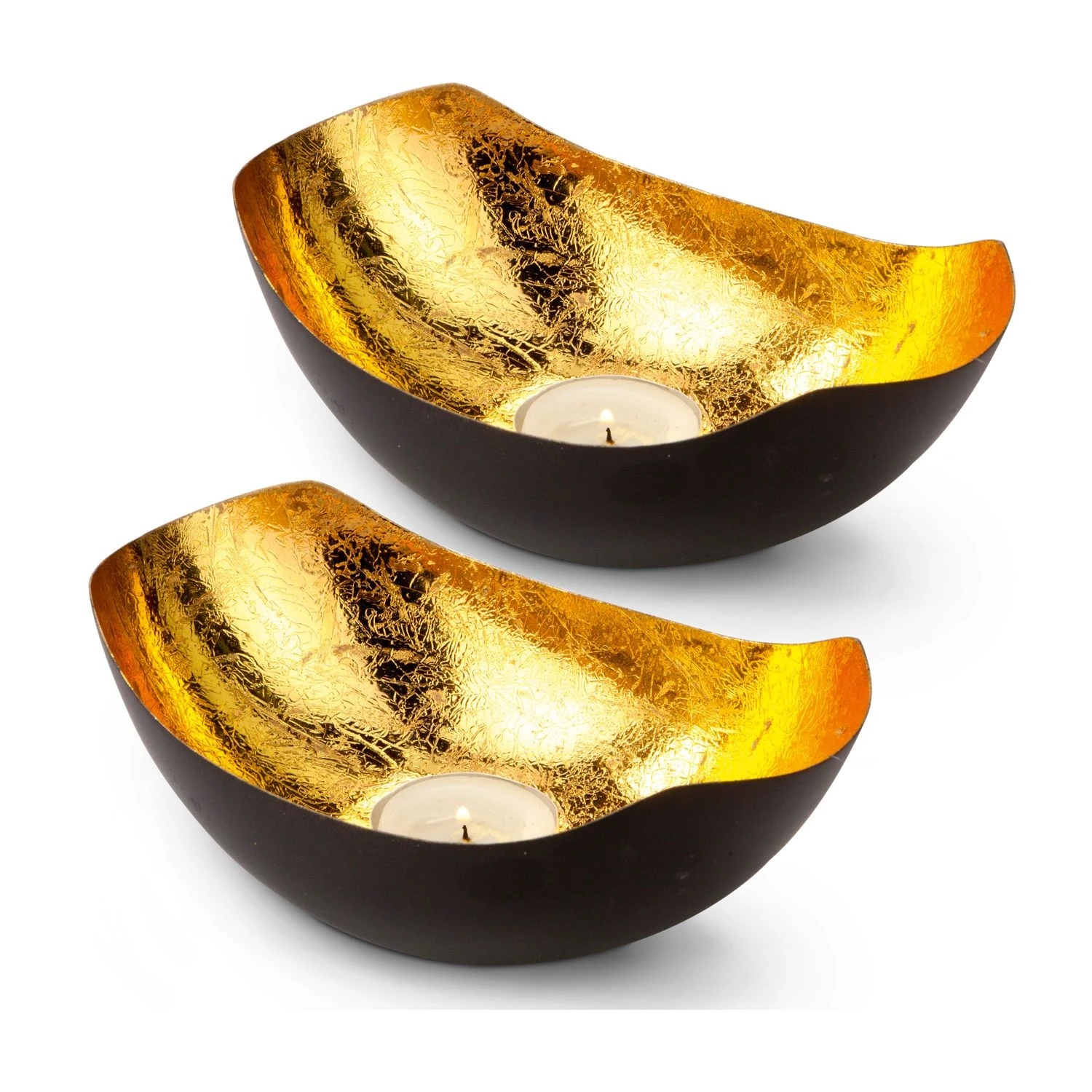 Dekoratives Teelichtschalen Set für gold-schimmerndes Kerzenlicht (Metall – seidenmatt braun lackiert mit Goldfolienauskleidung)