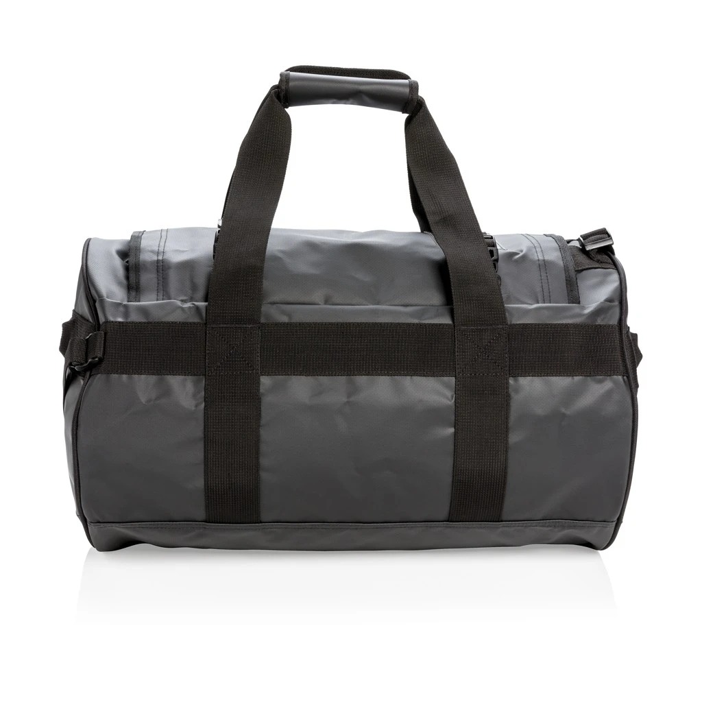 Dieser Tarpaulin Rucksack kann sowohl als Seesack, als auch als Rucksack getragen werden. Das robuste Design passt zu jeglichen Abenteuertrips und die clever gestalteten Riemen garantieren Tragekomfort. Im Inneren befindet sich ein Hauptfach mit 1 Netztasche und 2 kleineren Fächern.