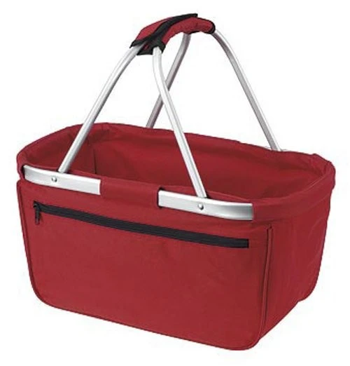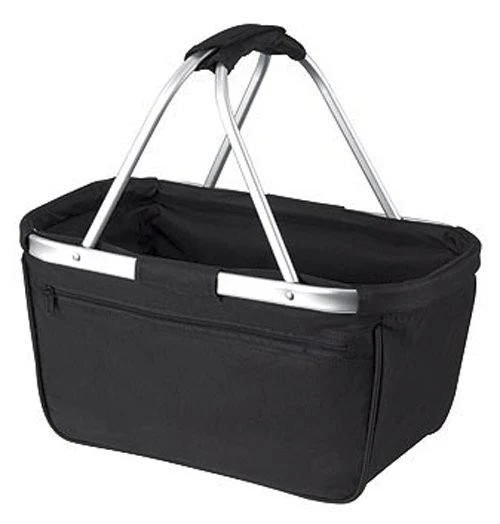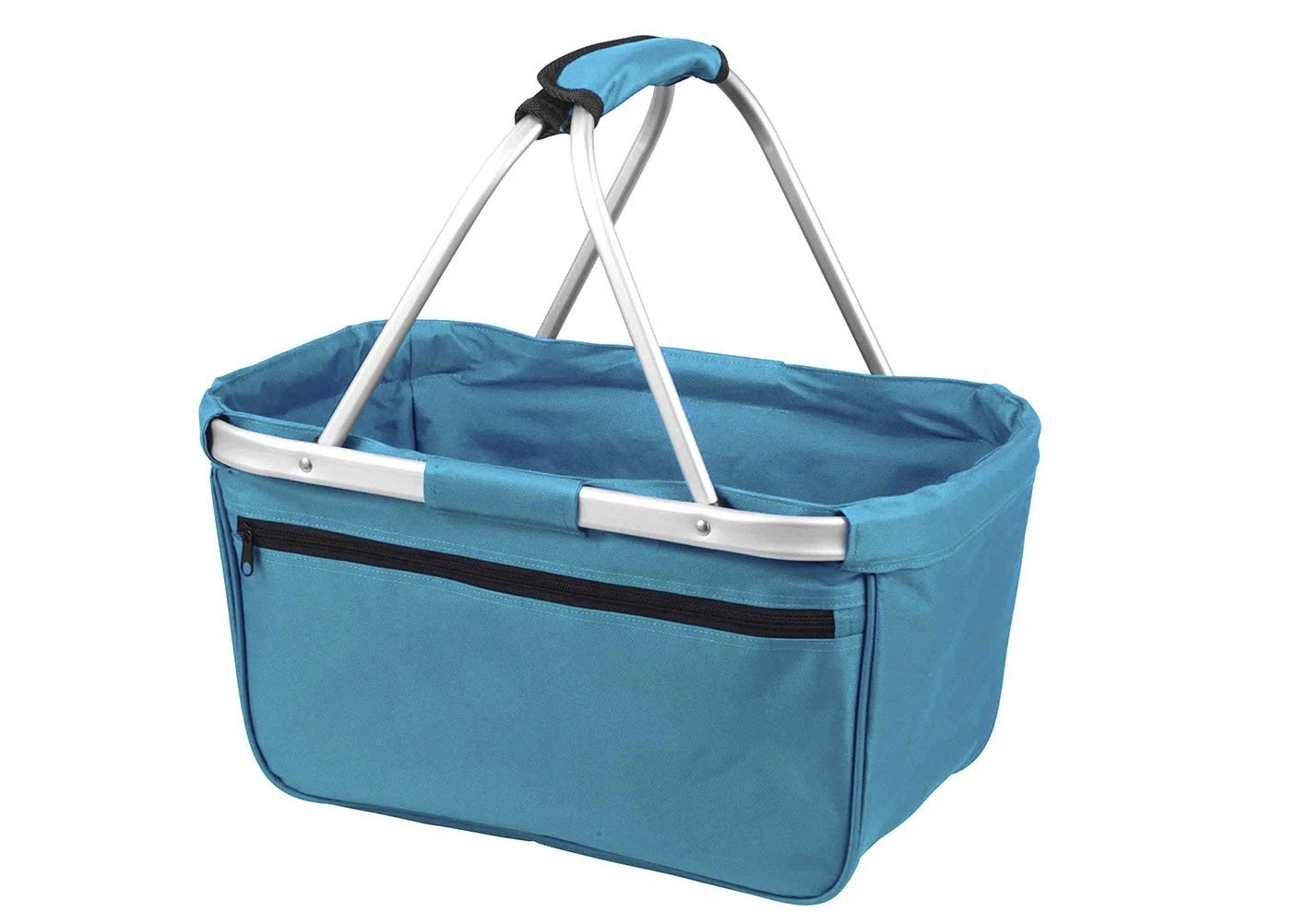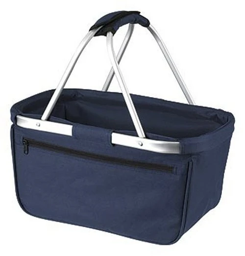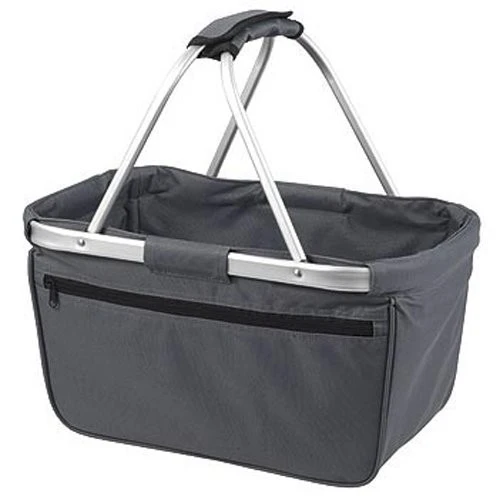 formschöner Einkaufskorb mit Alurahmen und Reißverschluss-Vortasche; faltbar