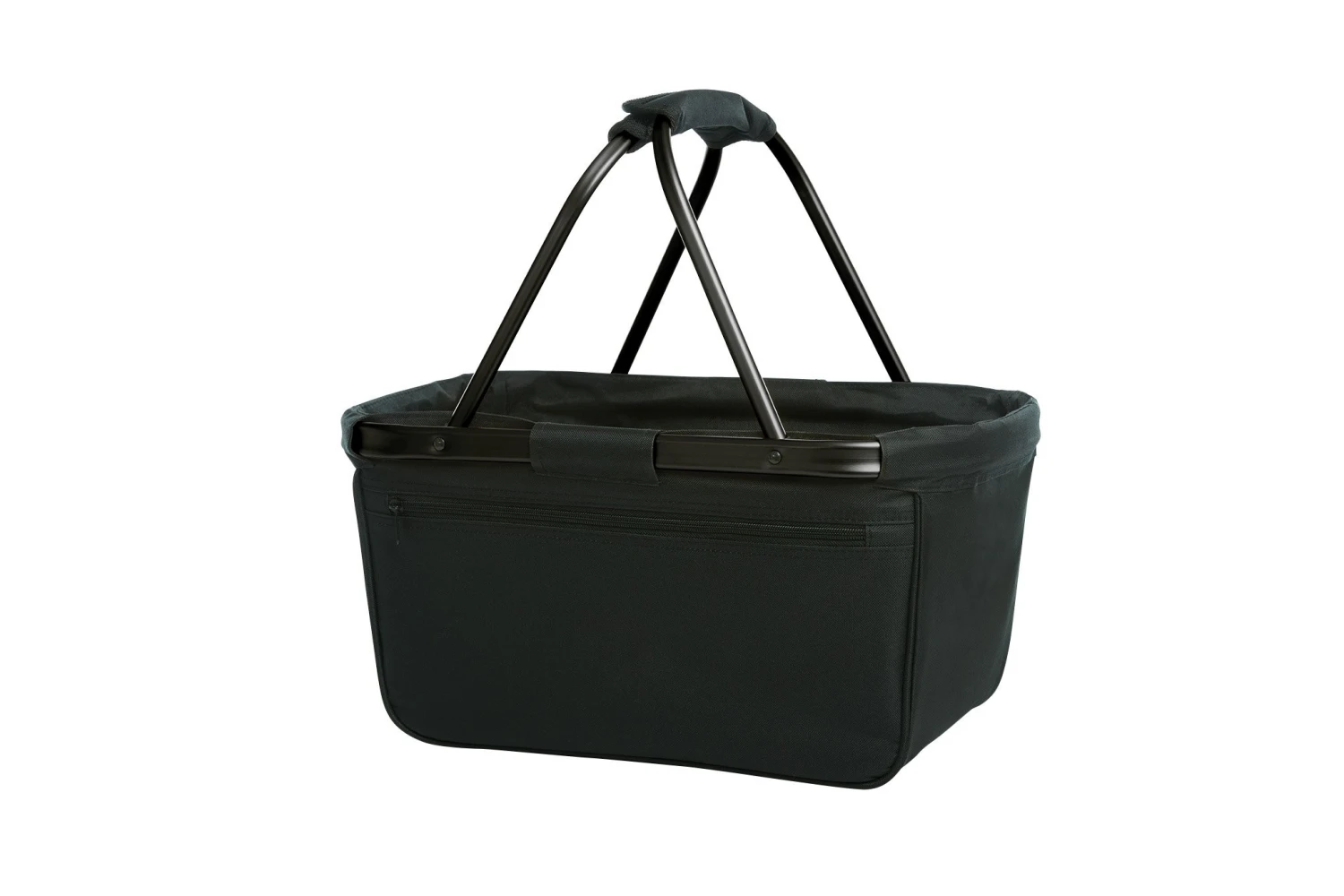 formschöner Einkaufskorb mit Alurahmen und Reißverschluss-Vortasche; faltbar