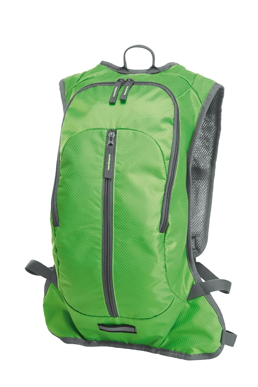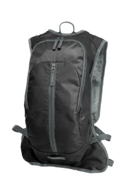 sportlicher, ergonomisch geschnittener Rucksack; gepolstertes Gurtsystem; verstellbarer Brust- und Hüftgurt; Reißverschlussvortasche; innen flaches Einsteckfach u.a. geeignet für zusätzlich lieferbare Wasserblase