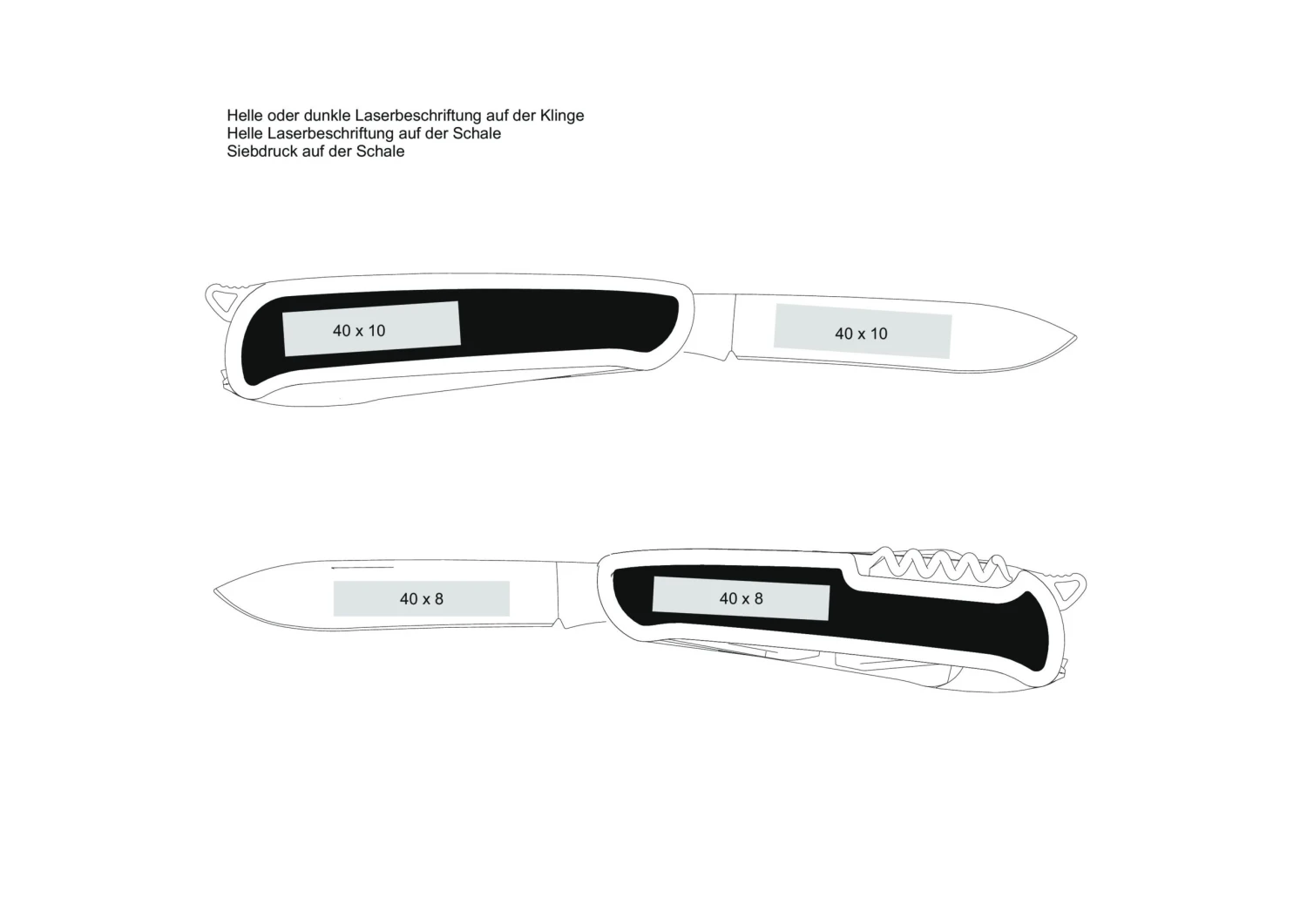 | Werbefläche | (40 x 8 mm) Klinge (40 x 8 mm) Griffschale |