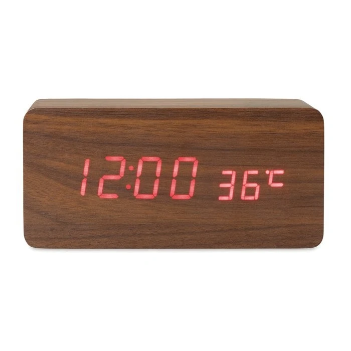 LED Tischuhr mit induktiver Ladestation. Temperaturanzeige und Alarmfunktion. Rotes LED. MDF. Inkl. AC-DC Adapter. MDF. Nicht geeignet für den Einsatz in Großbritannien. Kompatibel mit den neuesten Android Smartphones, iPhone® 8, 8S und X und höher.