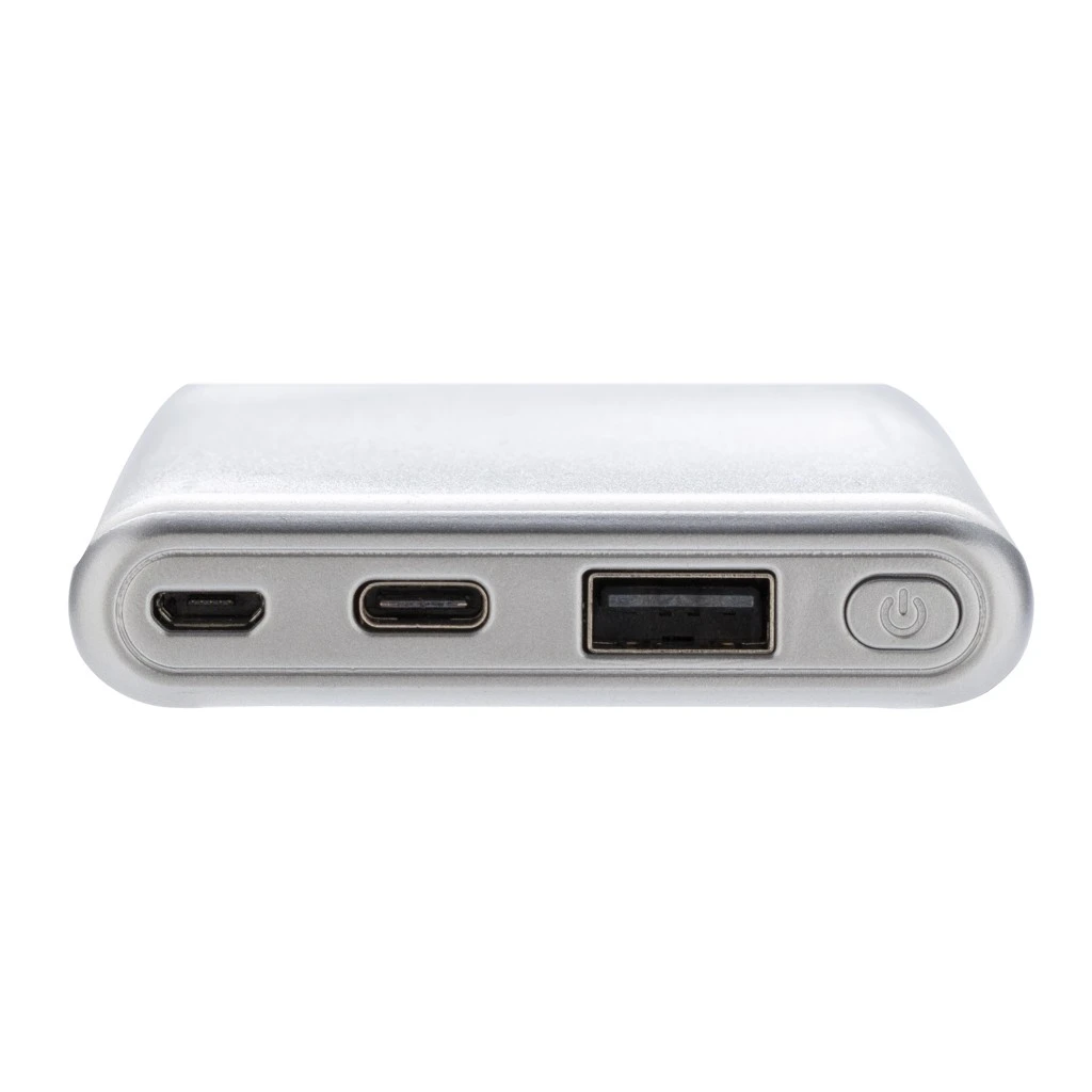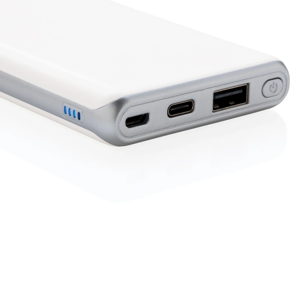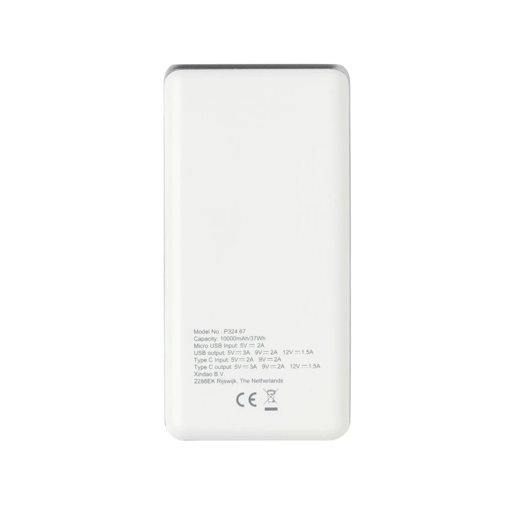 State-of-the-Art 10.000mAh Powerbank mit ultraschnellem Output. Aus ABS und mit regulÀrem USB-Port sowie Type-C. Micro-USB Input: 5V/2A. USB Output: 5V/3A 9V/2A 12V/1.5A. Type-C Input: 5V/2A 9V/2A. Type-C Output: 5V/3A 9V/2A 12V/1.5A.