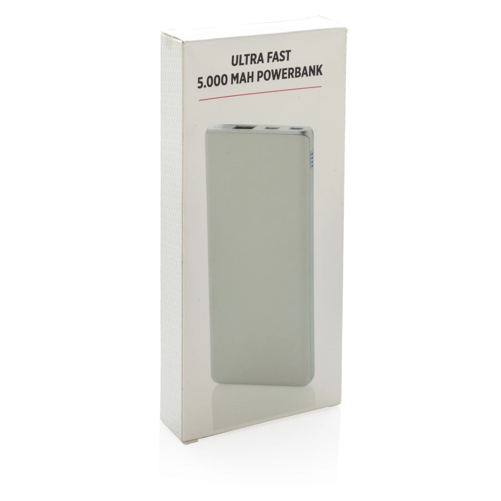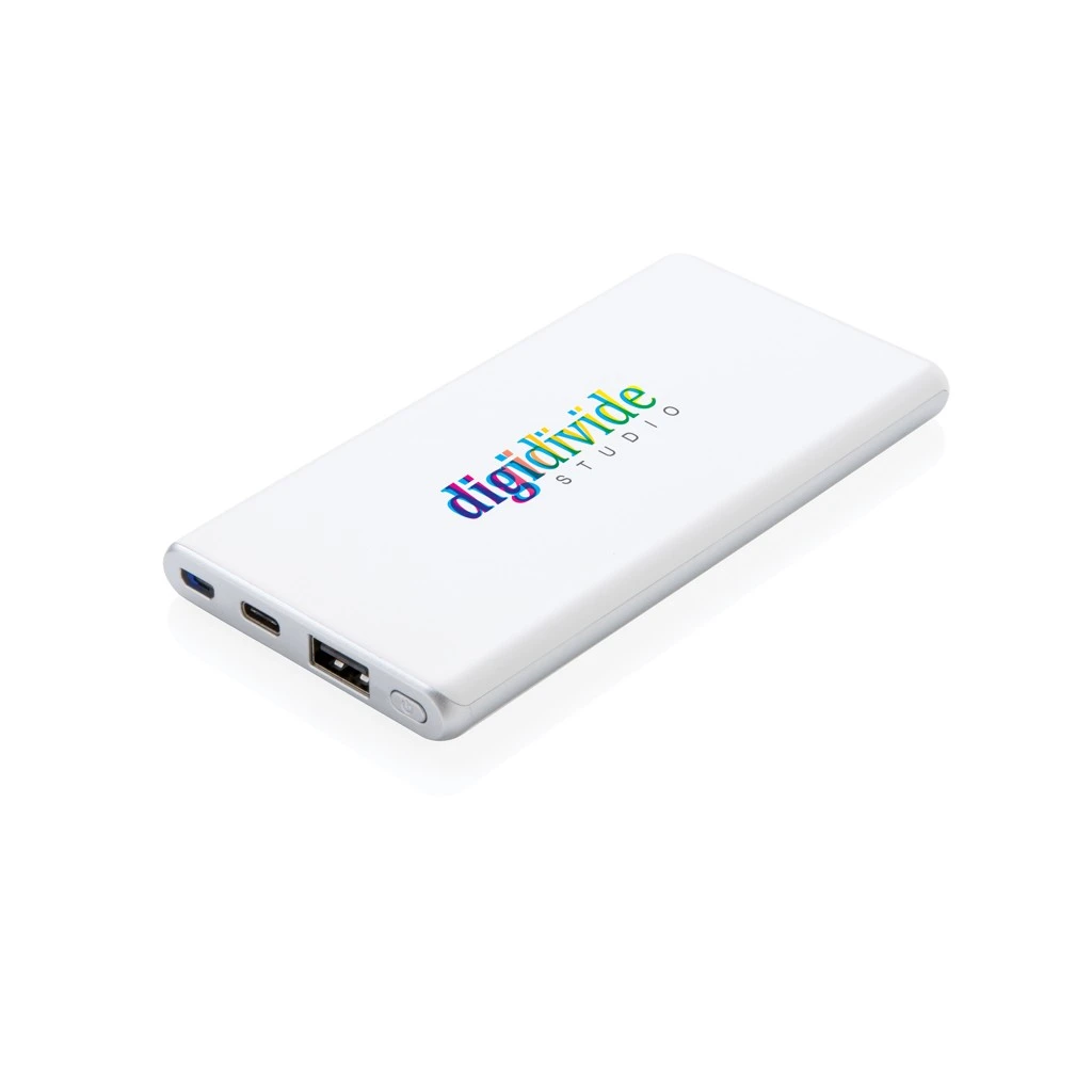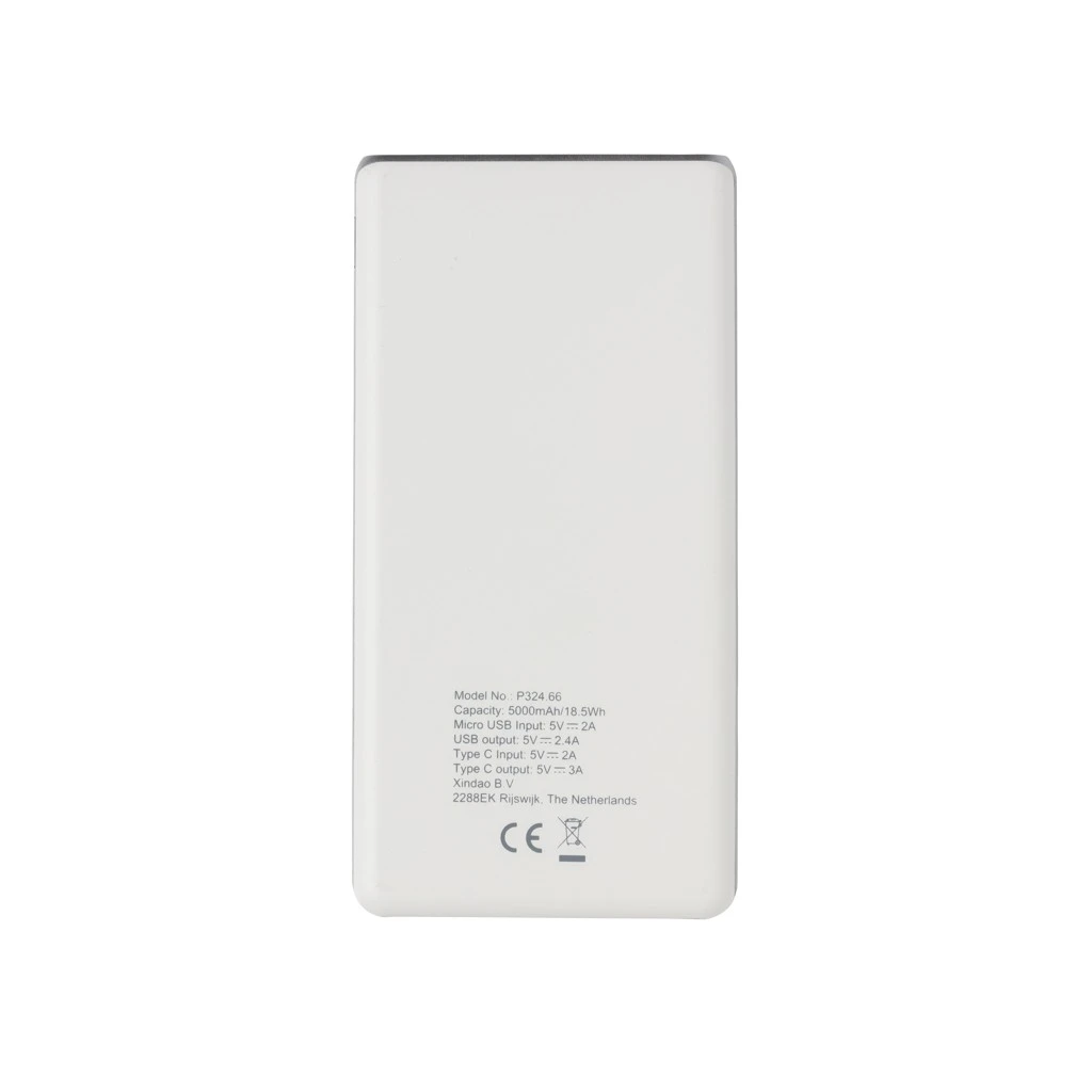 State-of-the-Art 5.000mAh Powerbank mit ultraschnellem Output. Aus ABS und mit regulärem USB-Port sowie Type-C. Micro-USB Input: 5V/2A USB. Output: 5V/2.4A. Type-C Input: 5V/2A. Type C. Output: 5V/3A.