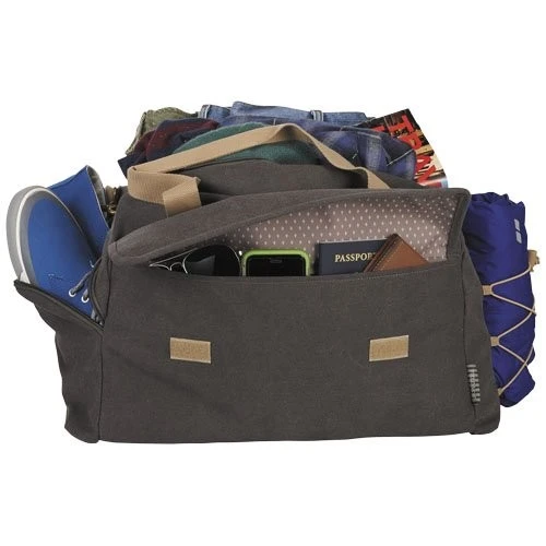 Venture 16 Reisetasche. Diese Venture Reisetasche ist für Personen, die sich nach Abenteuer sehnen konzipiert. Große Hauptöffnung mit Innentasche. Große Fronttasche mit Organizer, abnehmbare verstellbare Schulterriemen, Seitentasche und Trolleybefestigung. 16 oz. Baumwoll Canvas.