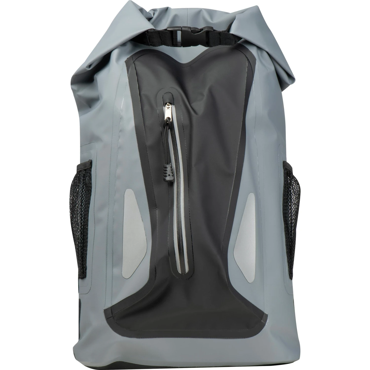Wasserabweisender Rucksack aus 600D PVC mit reflektierenden Flächen, gepolsterten Tragegurten, Getränkefach und weiteren Fächern im Innenraum. Der perfekte Wegbegleiter bei jedem Wetter. Ihre Werbung wird auf den Rucksack gedruckt.
