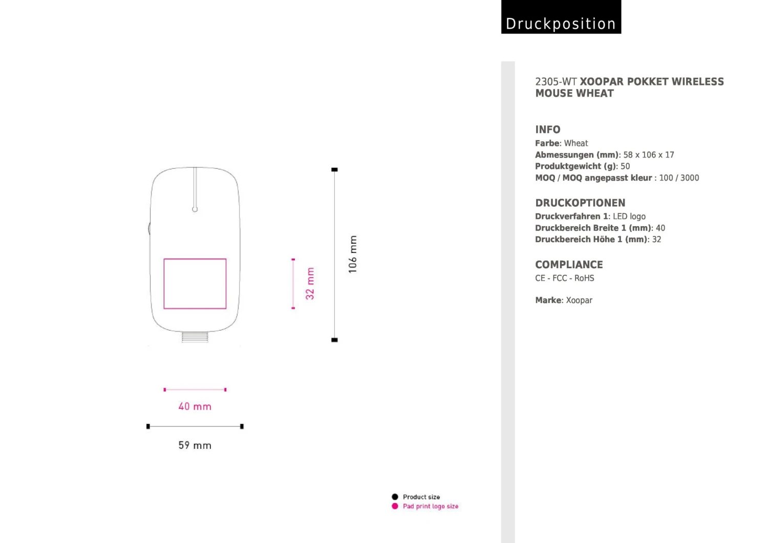 Die preisgekrönte Pokket-Maus wird jetzt grün! Der klassische Werbeartikel für den Schreibtisch mit großer Druckfläche, kabelloser Konnektivität und jetzt aus „weizenbasiertem“ Komposit.